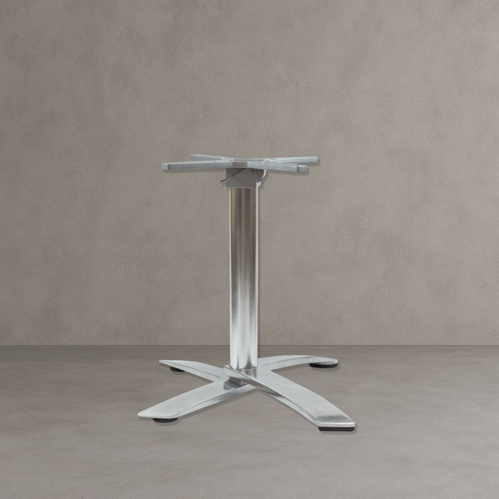 The aluminum cross-style folding base is high quality and suitable for lightweight table tops, suitable for indoor use in any catering, restaurant, cafe, or commercial environment. This aluminum table base features a spread of 30 inches x 21 inches and is available in dining height. Perfect for indoor and outdoor use, it is great for any dining, restaurant, home, or commercial environment that requires a sturdy base and an elegant, modern style.