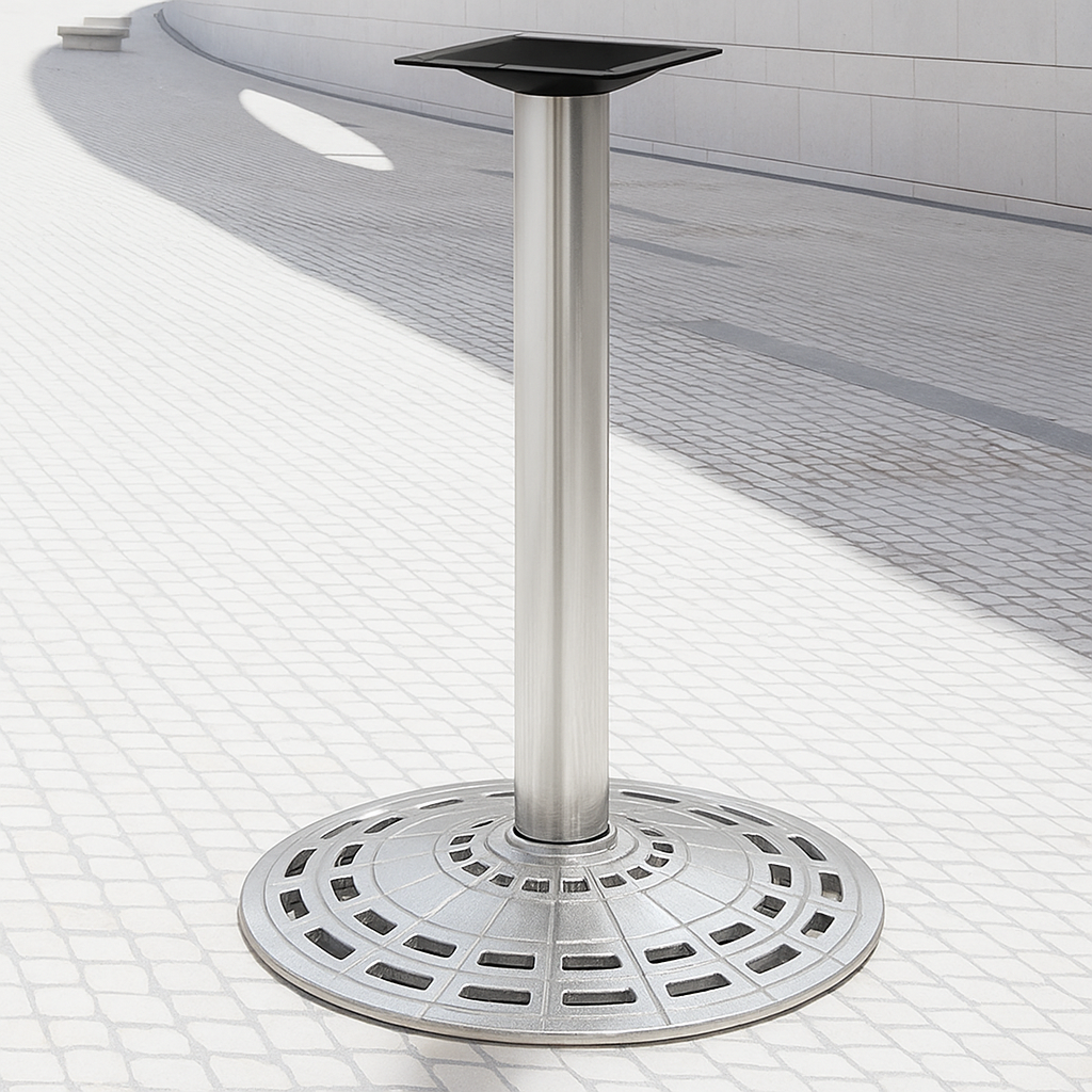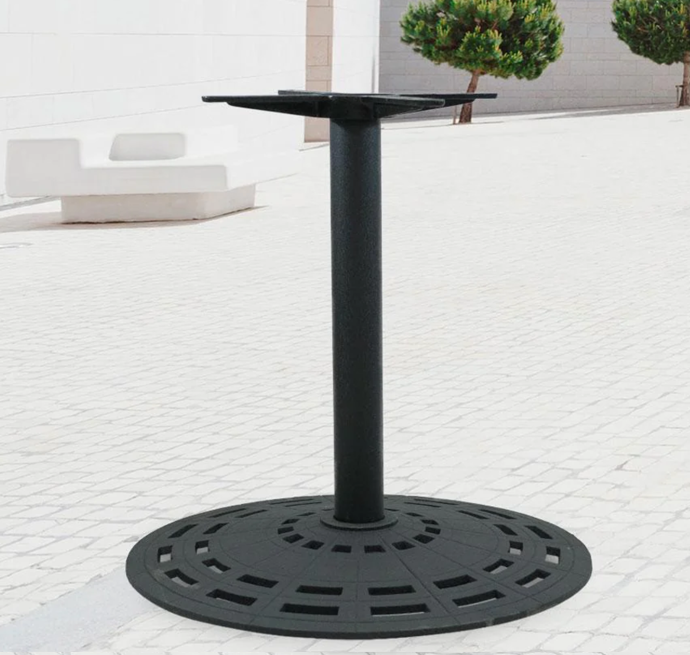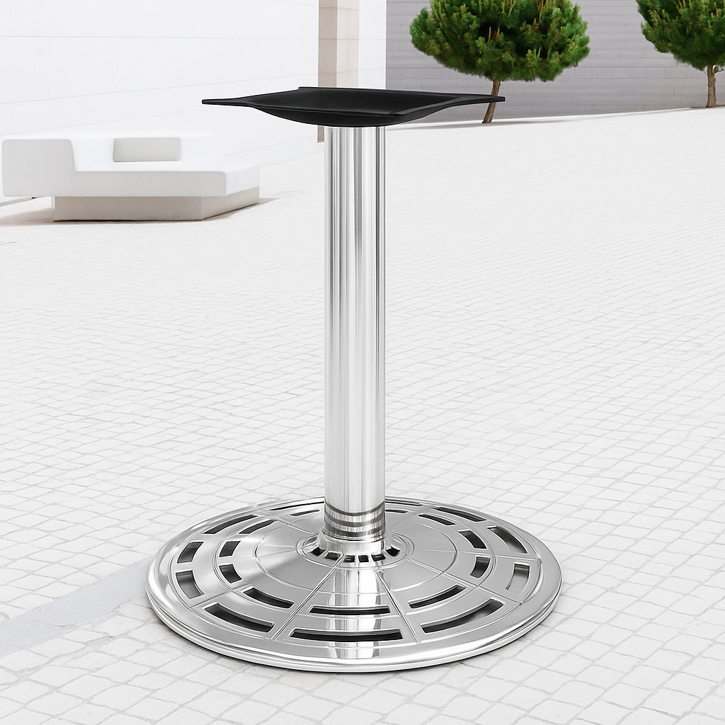 The 2903 series is a high quality, round table base. The disc-style table base features a commercial grade, polished chrome finish that resists corrosion, and is suitable in any, cafe, diner, bar, pub, or restaurant dining area. Our 2903 cast iron table base is perfect for indoor use and has a pattern-cut cast iron base that adds a splash of highlight that can match your décor style. The table base has an 18-inch spread and is available in dining table height.