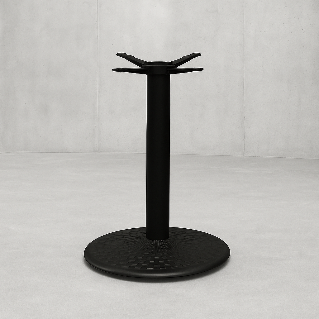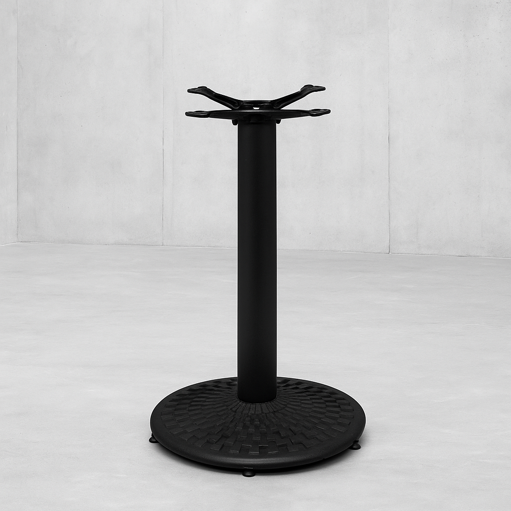 The 650 chrome table base is a high-quality round table base with a silver textured finish, perfect for indoor use in any catering, restaurant, cafe, or commercial environment. This disk-style dining height table is available in 22 inches. The 650 chrome table bases feature pattern-cut cast iron bases that add some flair without detracting from the restaurant's décor. This table base has the versatility to support your various needs.