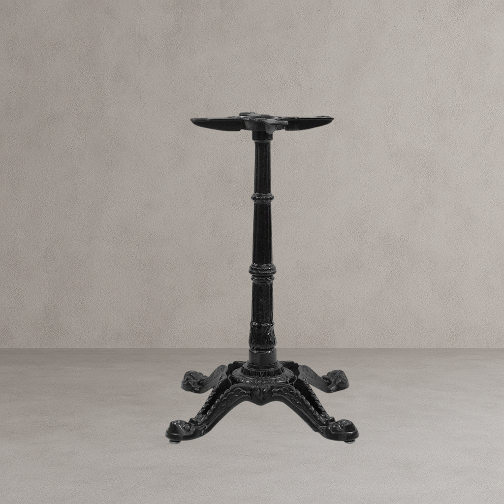 The CC2525 series table bases combine excellent strength with classic French bistro design. The ornate column and base will add a unique, European flair to your establishment, and the black, semi-gloss, powder coat finish blends seamlessly with any design, prevents corrosion, and is easy to maintain.