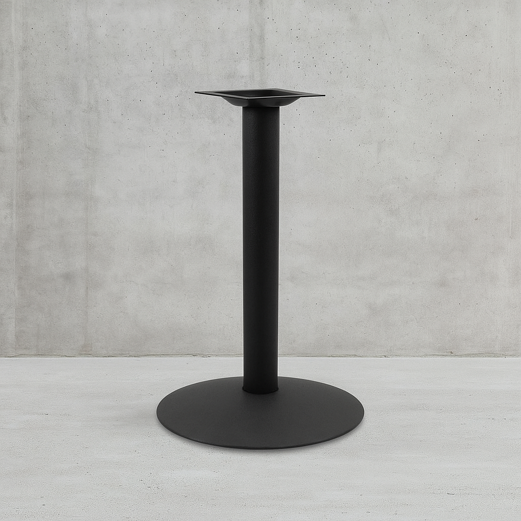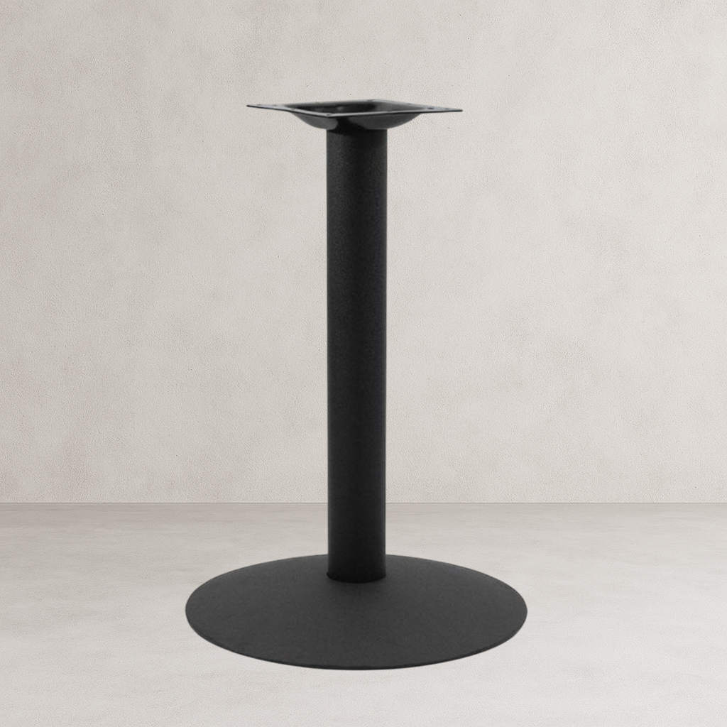 The S series are high quality, disc-style table bases, perfect for indoor use in residential and commercial environments. The S series bases are finished with a commercial-grade, textured black powder coat finish that resists corrosion, and blends seamlessly in any, cafe, diner, bar, restaurant, or home.
