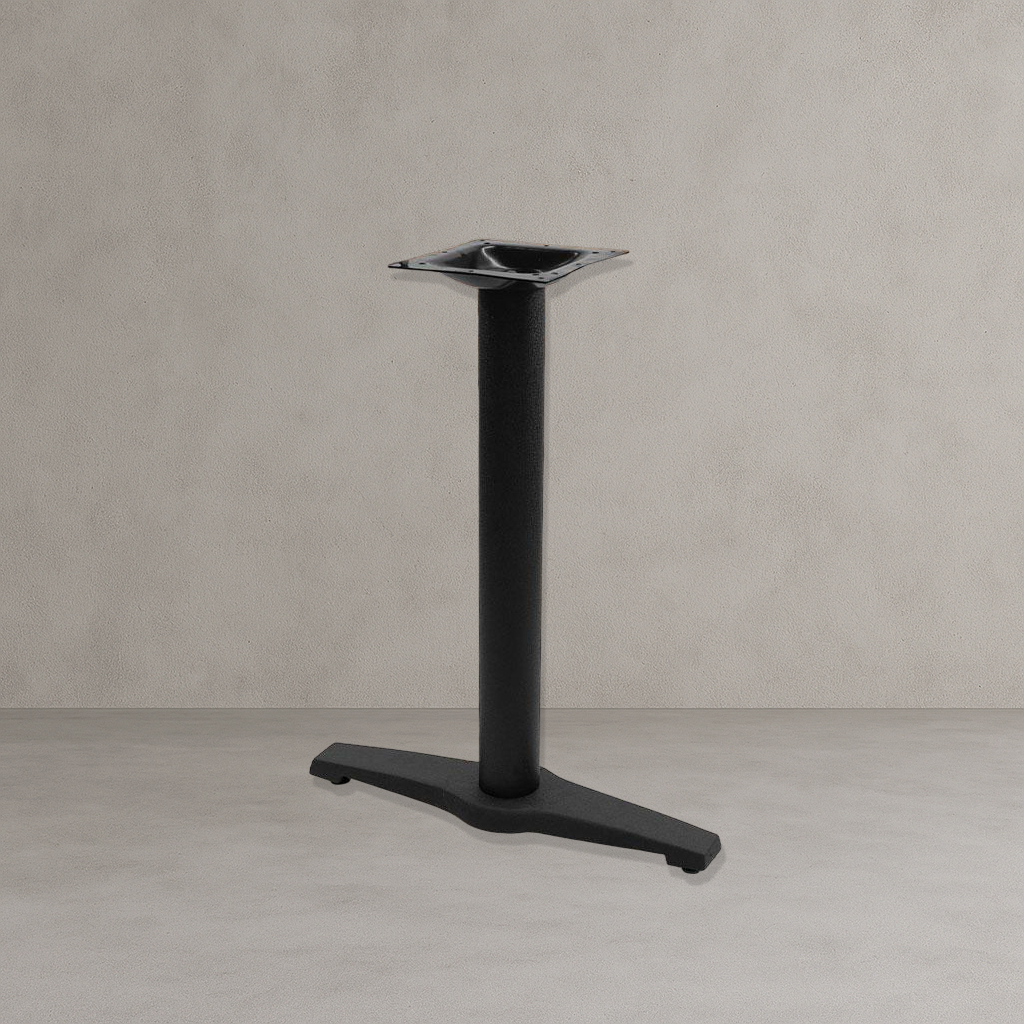 TR Table End BaseThe TR SERIES is a high quality, T style table base in black texture finish, designed to be used in pairs. This style of table base is good at space-saving, and you can maximize the space underneath the table top. This table base features a dining height, has a 22 inches spread, and weighs in at 40 pounds. It will blend in perfectly in any, cafe, restaurant, bar, pub, or restaurant dining area.