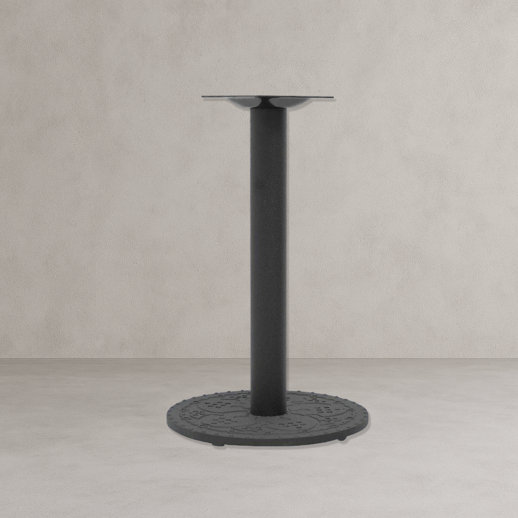 Our B3 table base and column is a high quality, European style in black texture finish, and is perfect for indoor use in any dining, restaurant, cafe, or commercial environments. This table base features a 17'' base size and cast iron mounting plate with a 3" diameter steel column. It can blends seamlessly in any cafe, diner, bar, pub, or restaurant dining areas.